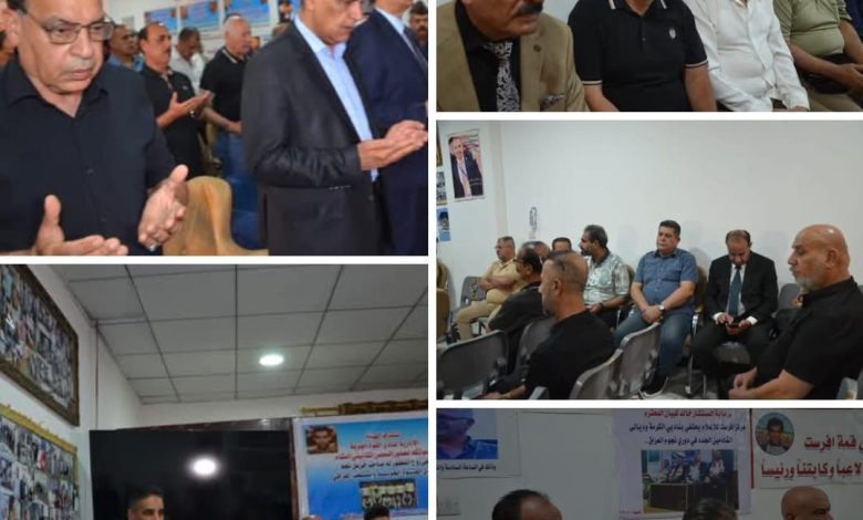 ثم القى رئيس شبكة الاعلام العراقي ونادي الكرخ الرياضي كريم حمادي كلمة مماثلة اشاد فيها بنادي القوة الجوية على سرعة تابين الفقيد
