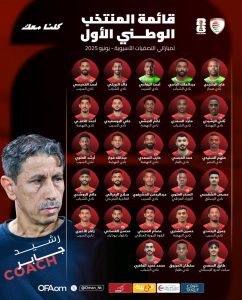 العالم الان – أعلن المدرب رشيد جابر اليوم الجمعة عن القائمة النهائية لمنتخب عُمان التي ستواجه الأردن وفلسطين في تصفيات آسيا المؤهلة لكأس العالم 2026، حيث ضمت 28 لاعباً.