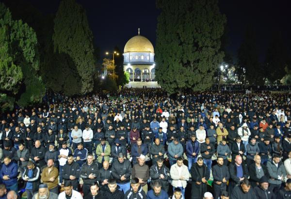 وقالت دائرة الأوقاف الإسلامية بالقدس في بيان لها، إن 100 ألف مصل أدوا صلاتي العشاء والتراويح في رحاب المسجد الأقصى، رغم القيود والإجراءات المشددة التي فرضتها قوات الاحتلال الإسرائيلي على دخول المصلين، ومنعها المواطنين الفلسطينيين من الضفة الغربية من الوصول إليه.