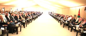 وقد استقبل رئيس الديوان الملكي الهاشمي يوسف حسن العيسوي هذا الحشد الوطني، حيث نقل لهم تحيات جلالة الملك عبدالله الثاني، واعتزازه الكبير بأبناء شعبه الأوفياء، الذين يواصلون العطاء والبذل في ميادين الشرف والمسؤولية، ويقفون صفًا واحدًا خلف القيادة الهاشمية دفاعًا عن الوطن ورفعته.
