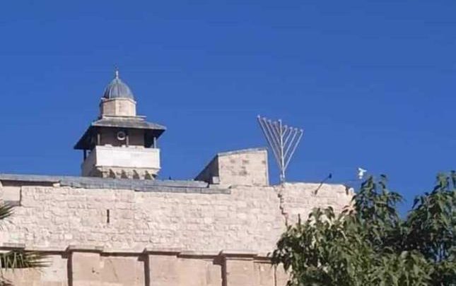 مستوطنون ينصبون شمعدانًا يهوديًا على سطح الإبراهيمي