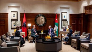 الأردن : الملك عبدالله الثاني يحذر خلال لقائه الرئيس الألباني من خطورة استمرار الاعتداءات على المقدسات الإسلامية والمسيحية في القدس.