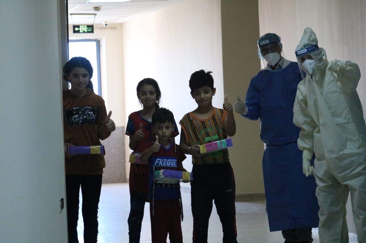 منظمة حرير تزور مستشفى الامير حمزة لتوزيع صندوق (صحتي أمانة ) للأطفال المصابين بفايروس كورونا.