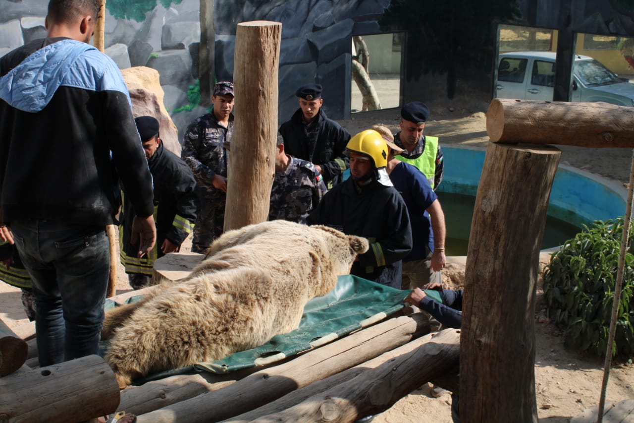 الدفاع المدني يساعد بنقل دب لإجراء عملية جراحية له في حديقة غمدان للحيوانات