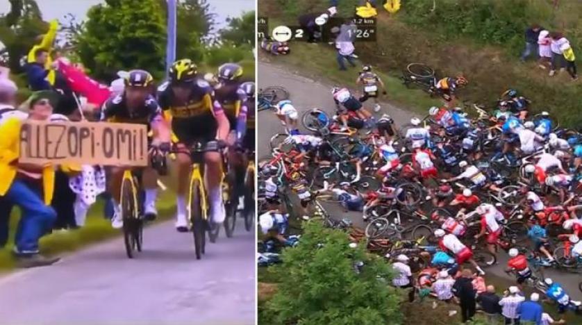 مُشجعة مستهترة تتسبب في واحد من أسوأ حوادث طواف فرنسا