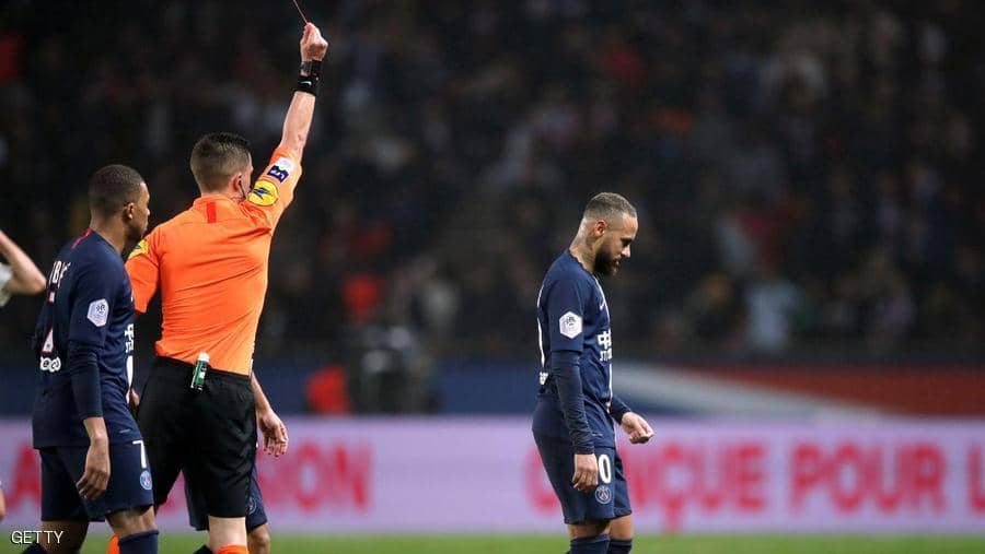 نيمار يتعرض للطرد في فوز سان جيرمان برباعية على بوردو