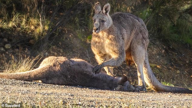 صورة تظهر حزن كنغر بعد نفوق رفيقته وصغيرهما