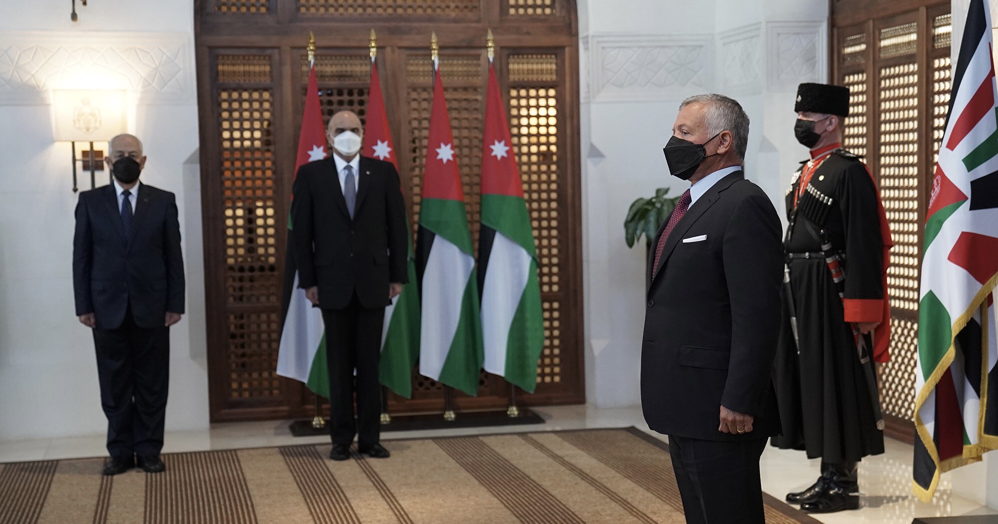 وحضر أداء اليمين الدستورية رئيس الوزراء الدكتور بشر الخصاونة، ورئيس الديوان الملكي الهاشمي يوسف حسن العيسوي.